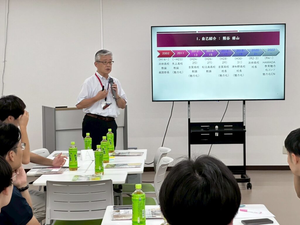 始めに、浜田市教育魅力化コーディネーターの熊谷修山様に、キャリア形成と自己分析についてお話いただき、自己分析の大切さについて学びました。