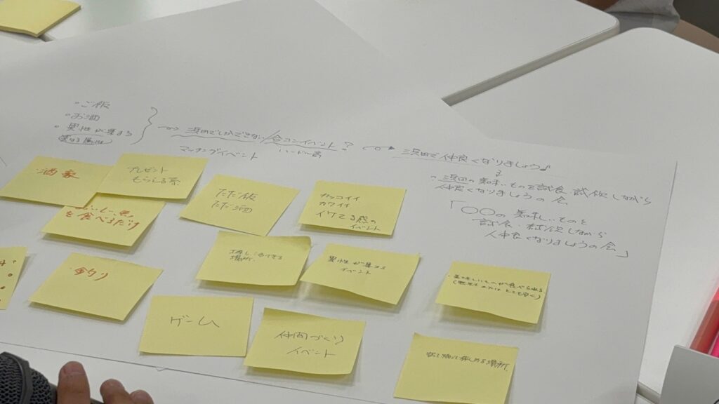 その後のワークでは、KAKKI式人材タイプに沿ってグループ分けをし、テーマを決めて話し合いをしてもらいました。1回目のワークは、人材タイプが「同じ人」のグループ、2回目のワークは人材タイプがバラバラの「バランスのよい」グループでワークを行い、チームの中での自分の役割や、話し合いの進み方がどう違うかを体験していただけたと思います!