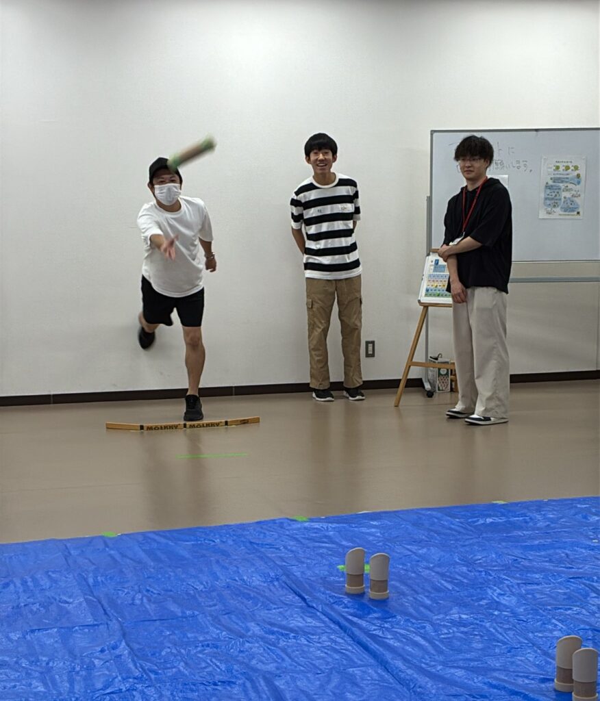 体験会ではモルックの説明と練習を行った後、実際に試合を行いました参加してくださったみなさまからは