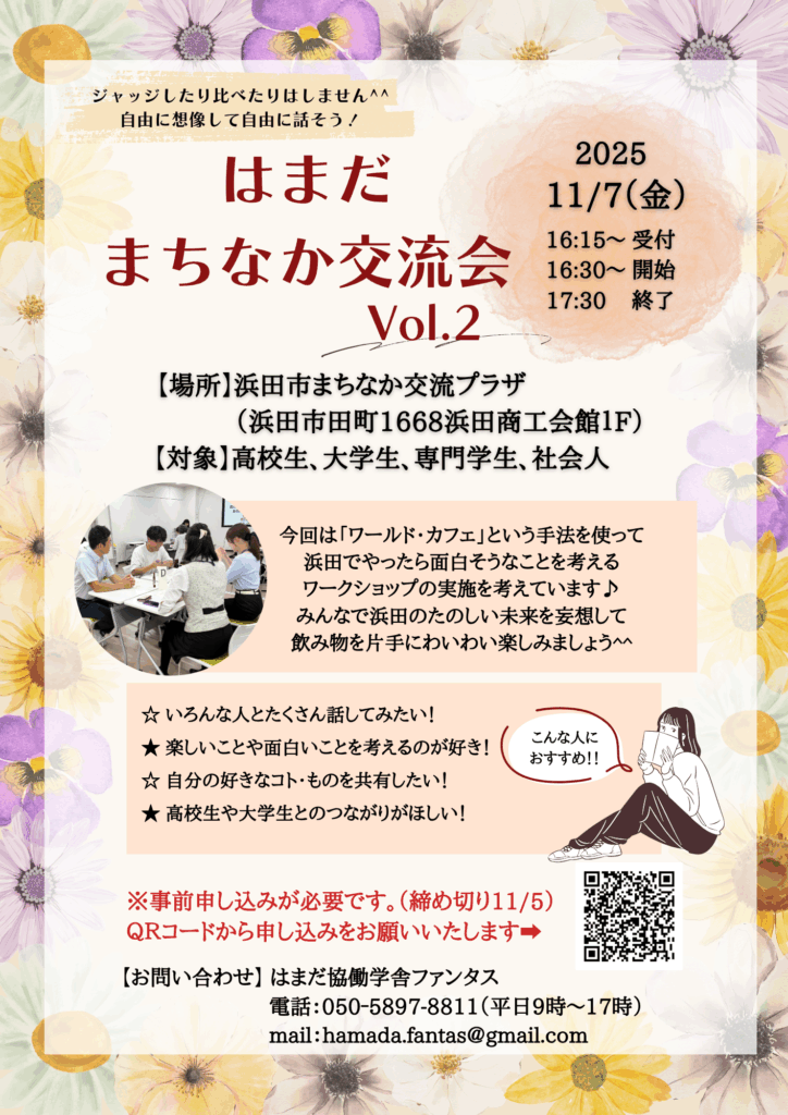 ジャッジをしたり比べたりは一切なし!自由な発想で自由に話して、みんなで楽しい浜田の未来を妄想しましょう!💭