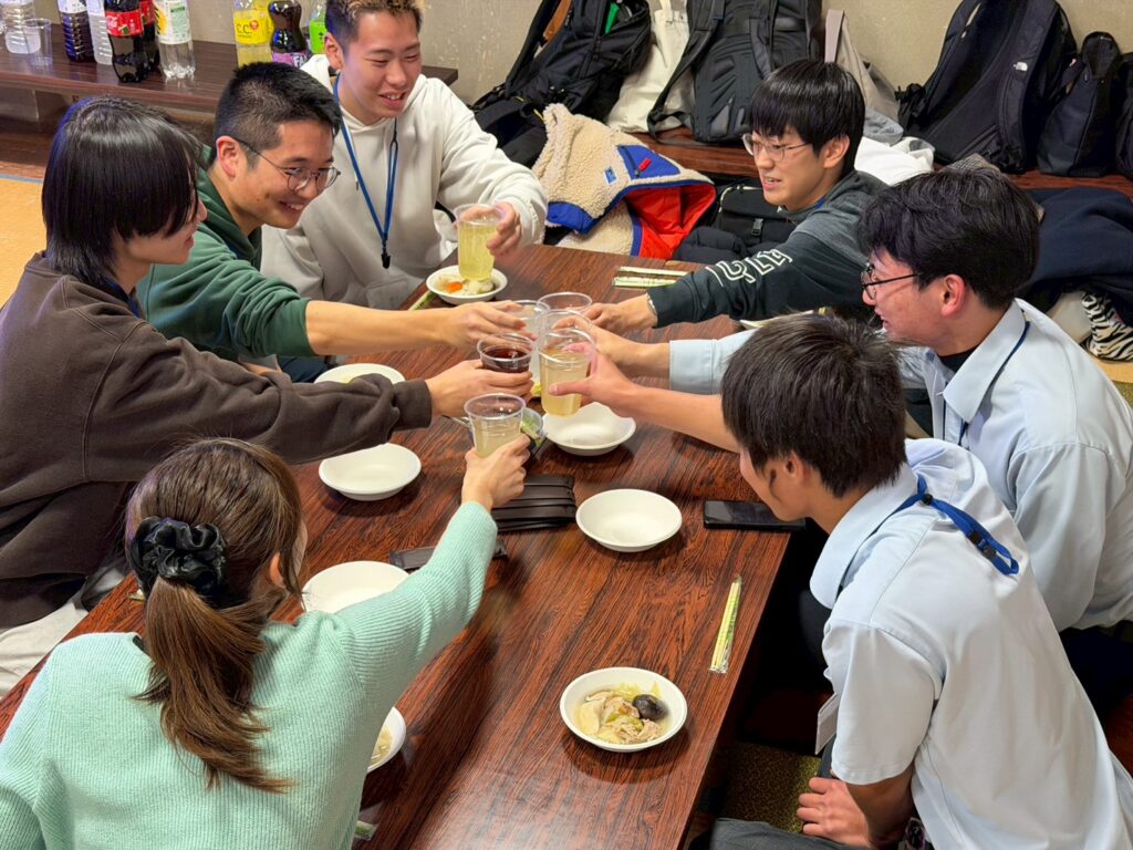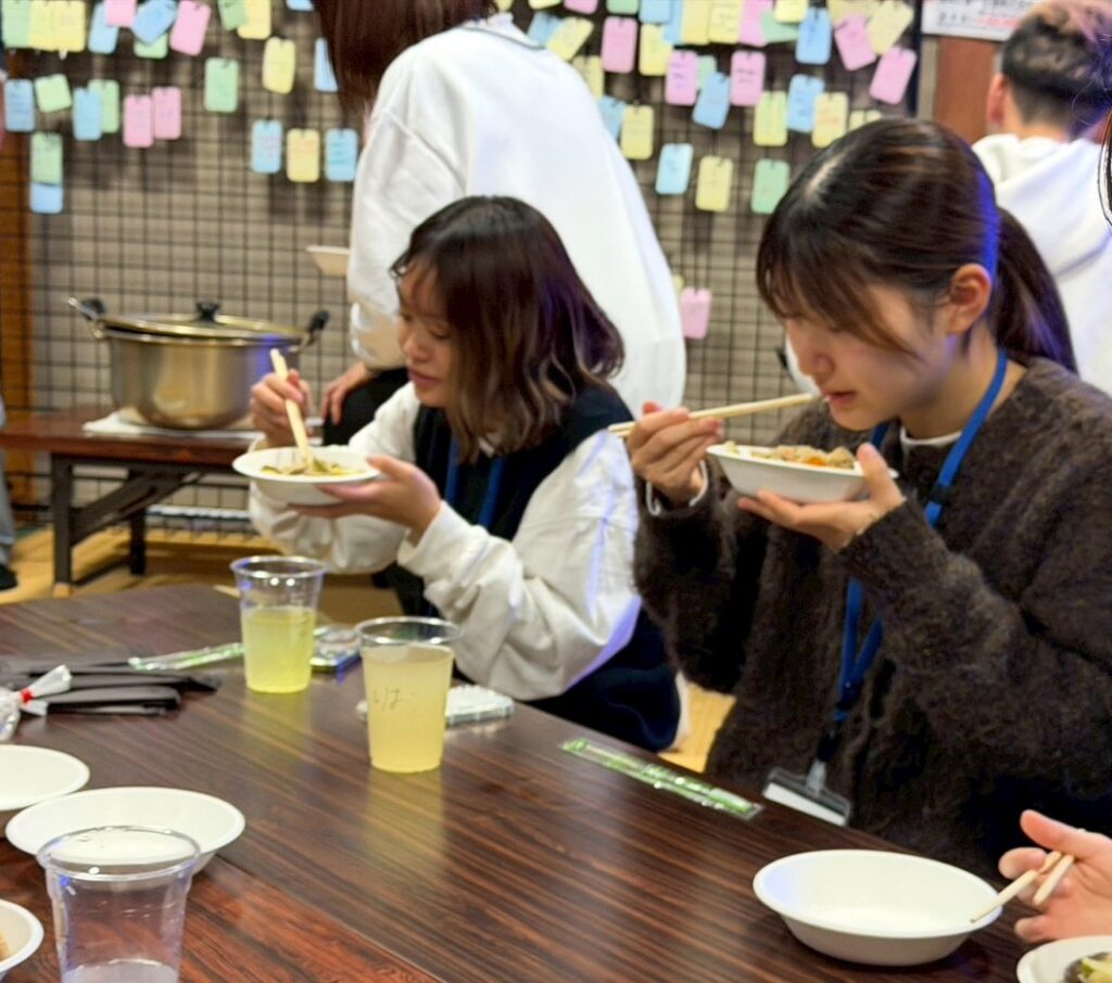 鍋の調理を通じて、学生と社会人のコミュニケーションも生まれ、心も体もあたたまる夜となりました(^^)