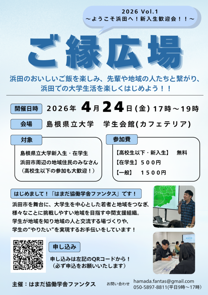 記念すべき第1回目は「ようこそ浜田へ!新入生歓迎会!!」