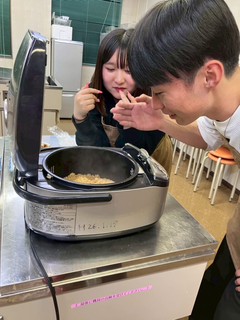 今回の試作会は、小国地域と旭地域にインターンとして関わっていた大学生のお二人を中心に進められました。テーマとなったのは、小国地域の「お米」と旭地域の「にんにく」。それぞれの地域の魅力が詰まった食材を、どのように組み合わせるとより美味しくなるのか、試行錯誤を重ねました。